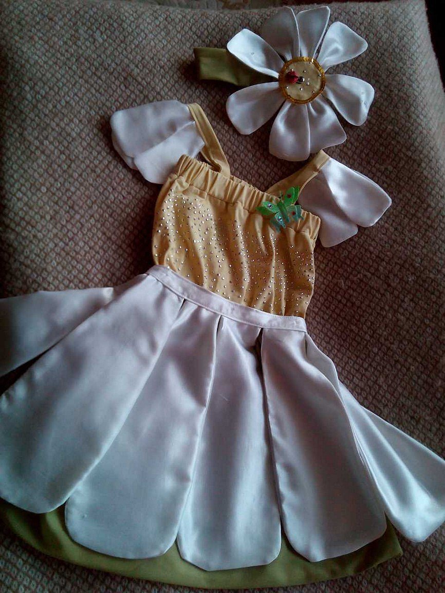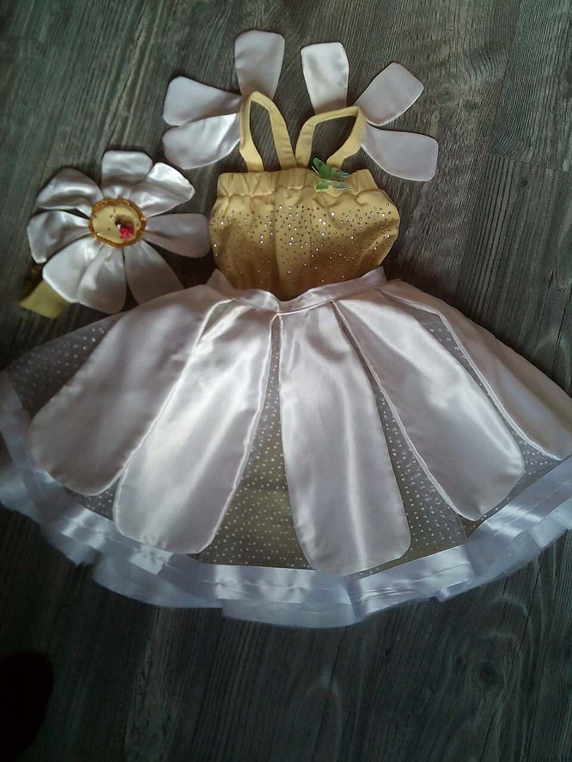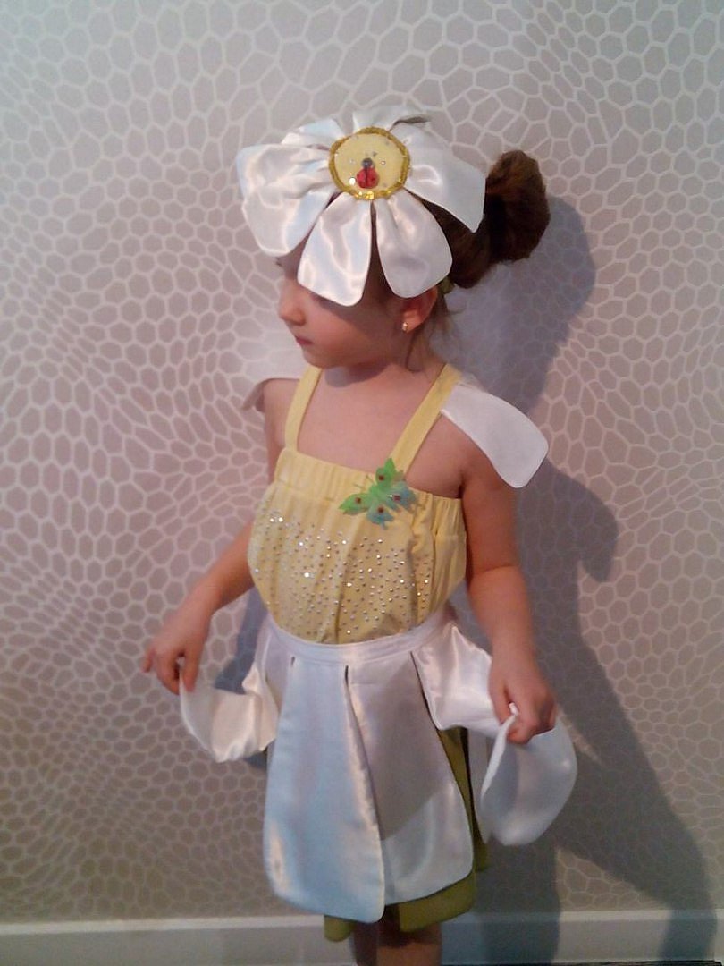 ноябрь 2017Ромашка - це символ чистоти, ніжності і здійснення мрій.Яскравий костюм з імітацією білих пелюсток на зеленій спідниці і жовтим верхом, що символізує серцевину ромашки, сподобається дитині і створить позитивний настрій у всіх гостей свята.